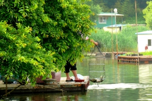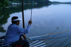 | 건너편 좌대에서 낚시를 즐기는 조사들 모습 |