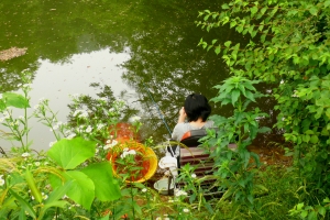 비가 그치고 아침에 다시 낚시를 시작한 마눌님입니다. |