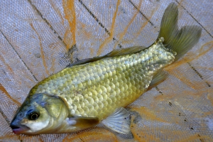 | 해 질 무렵에 첫 입질을 받고 황금붕어를 걸어 내었습니다. |