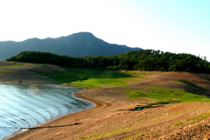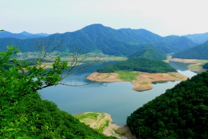 | 다래골 산장을 가기 위해서 산 정상에서 찍은 파로호 전경 |