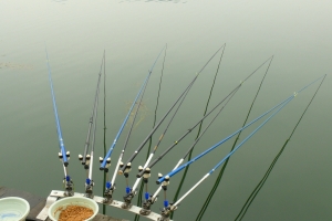| 상류권 말풀 좌대에 조사들이 낚시를 하고 있습니다. |