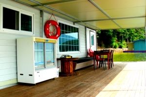 | 공간이 넓은 발코니는 여러명이 낚시와 휴식을 즐길 수 있습니다. |