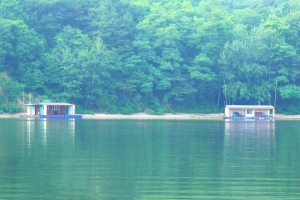 | 산쪽에 위치한 수상좌대들은 바람의 영향을 많이 받지 않습니다. |