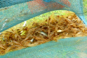 밤에 넣어 놓은 새우망에는 새우가 바글바글 합니다. |