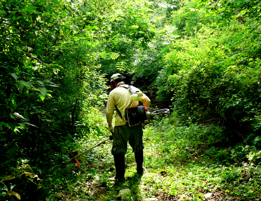 다래골 사장님이 민박 손님들의 야영을 위해서 계곡 정리를 하고 있는 모습 |