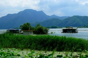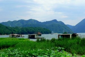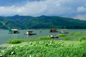 | 수초와 좌대들이 잘 분포되어 있는 자갈섬낚시터입니다. |