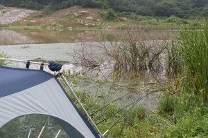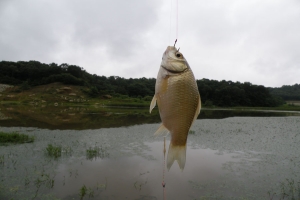 | 필자의 케미가 반짝이며 올라오면 작은 붕어가 낚여 나옵니다.ㅎㅎㅎ |