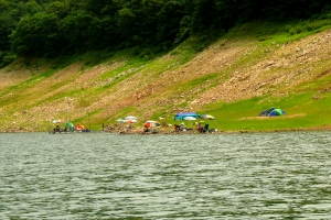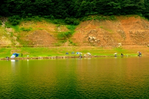 | 상류 건너편 자리에서 휴가 온 조사들이 자리를 잡았습니다. |