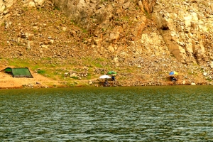 상류 건너편 자리에서 휴가 온 조사들이 자리를 잡았습니다. |