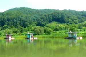 | 하류권에서 중류권을 바라 본 좌대 전경 |