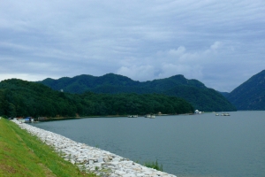 | 밤새 비가 내린 후 아침에 개기 시작하는 의암댐입니다. |