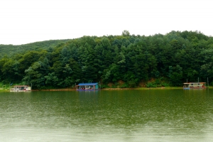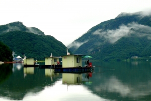 | 삼천낚시터 관리소와 일반 좌대들 전경 |