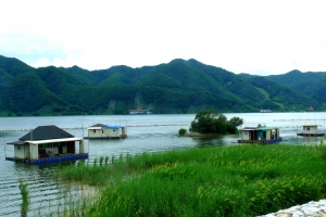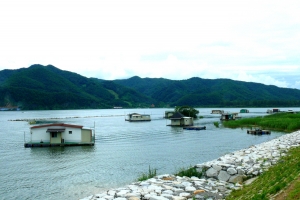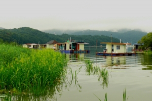 | 관리소 좌측 연안 수초대에 콘도형과 팬션형 좌대가 배치되어 있습니다. |