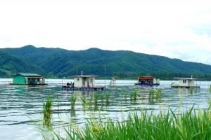 관리소 좌측 연안 수초대에 콘도형과 팬션형 좌대가 배치되어 있습니다. |