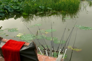 관리소 우측 말풀 포인트에 배치되어 있는 수상좌대 전경 |