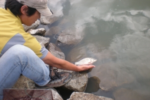 | 자생하는 참붕어와 새우가 채집망에 들어 옵니다. |