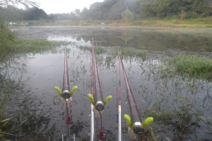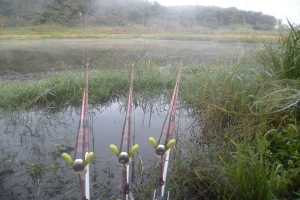 | 간밤에 중앙 긴대 두대는 늦은 챔질로 수초를 감는 바람에 채비를 잃었습니다. |