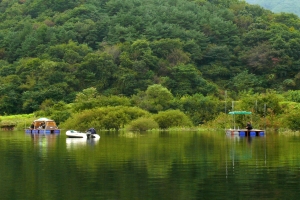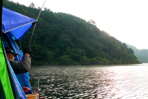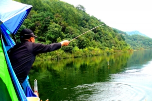 | 수몰나무 포인트에 좌대가 있습니다. |