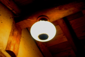 나무집 처마에 달려 있는 외등에 의지해 밤을 즐겨 봅니다. |