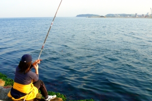 | 민서 엄마인 한송이님도 바다낚시에 빠져 봅니다. |