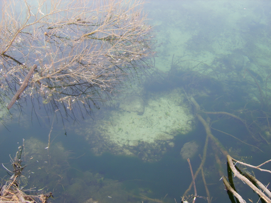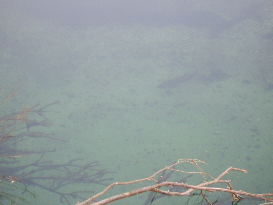 | 수질이 깨끗해 물속이 훤히 보입니다... 연어 몇 마리가 아직 회유를 하고 있습니다. |