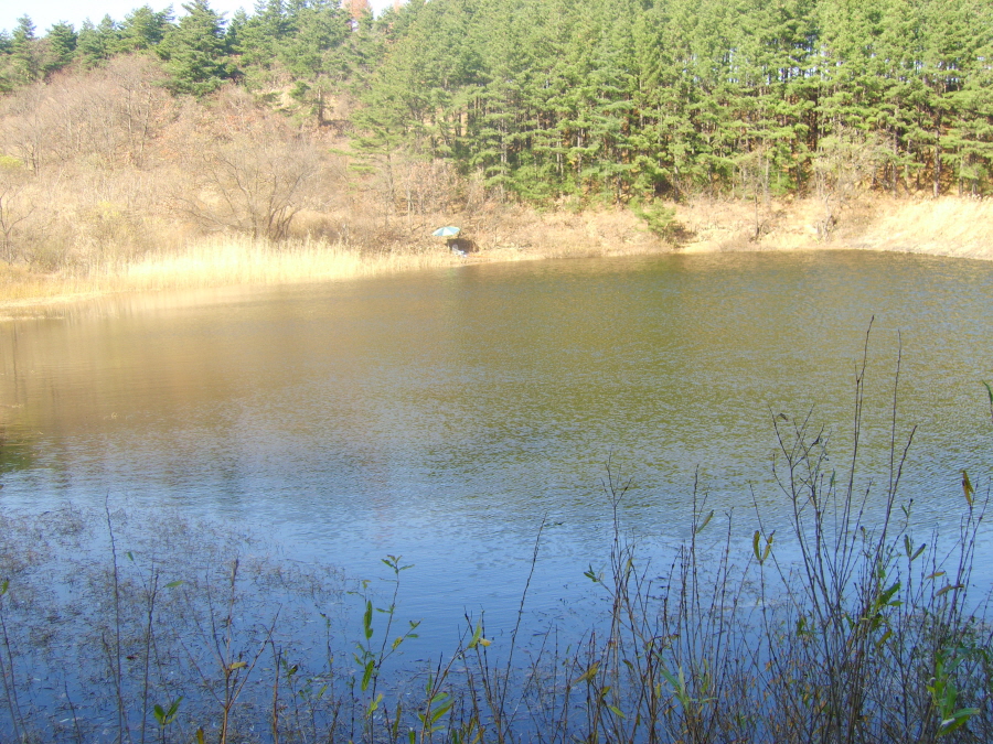 깊고 깊은 소류지로 향합니다... 저 멀리 소류지 제방이 보입니다. |