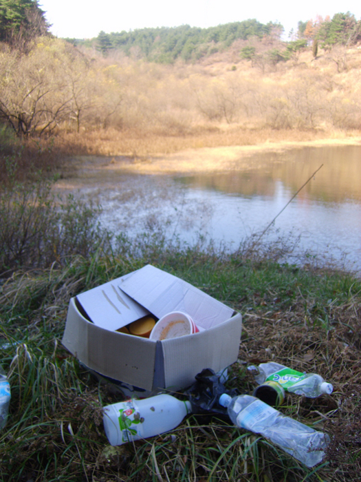 나른함에 소류지를 한바퀴 돌아 보려는데... 이런 어떤x이 이 짓을... 많이도 x 잡수셨네여. |