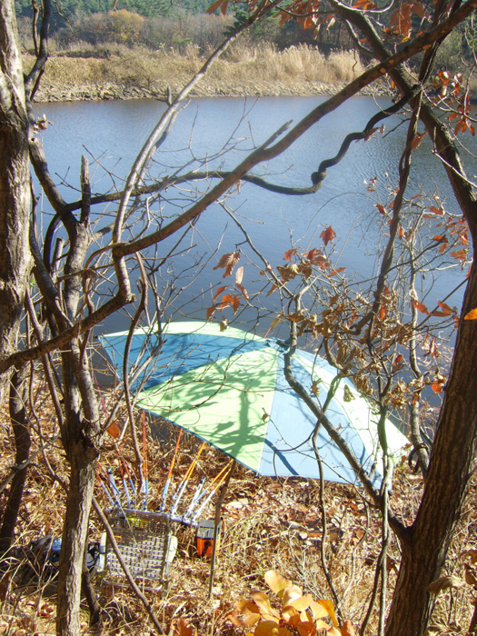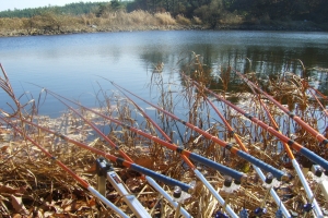 바람이 덜 타는 산밑 포인트를 정하고 낚싯대를 폅니다. |