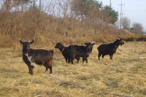 오르던 길목에 흑염소 가족이 풀을 뜯고 있습니다. |