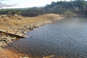 | 깊고 깊은 소류지로 향합니다... 저 멀리 소류지 제방이 보입니다. |