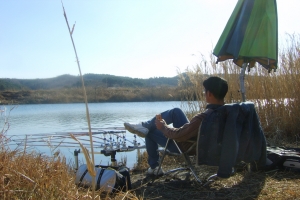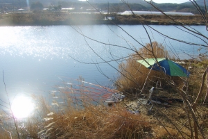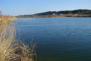 | 괜챦다 싶은 곳에 대를 널어 보았습니다... 수심은 멀면 멀수록 깊었습니다. |