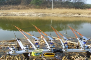 | 다른 곳으로 이동하기도 그렇고 해서, 찌가 서는 곳에, 대를 몇 대만 널어 놓고, 입질을 기다려 봅니다. |