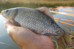 잘생긴 토종붕어... 마수걸이로 낚아 냈습니다. |