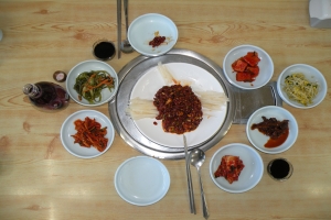 | 광시에 있는 식당에서 육회로 늦은 점심을 먹어요 |