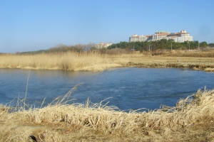 | 쏠비취 앞, 수로...연안으로 얼음이 녹아 발을 딪을 수가 없었습니다. |