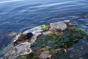 쏠비취 앞, 수로...연안으로 얼음이 녹아 발을 딪을 수가 없었습니다. |