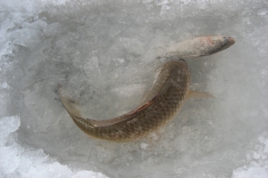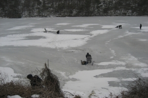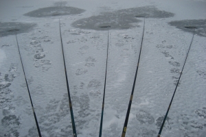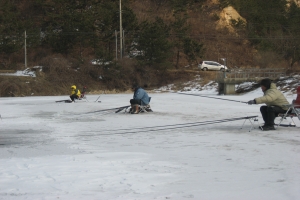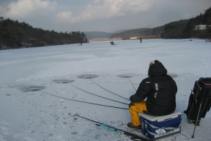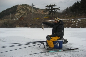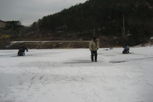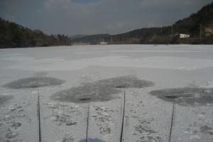 | 급한 마음에 얼음을 뚫어 채비를 드리워 봅니다. |