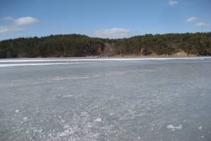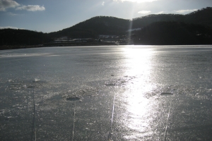 | 서둘러 얼음구멍을 뚫고... 따뜻한 햇볕이 비추기 시작합니다. |
