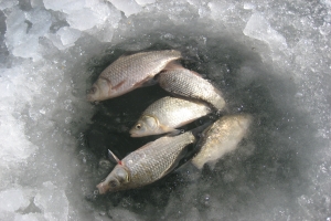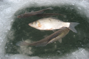 | 얼음 속에서 나온 붕어는 깨끗해서 좋습니다. |
