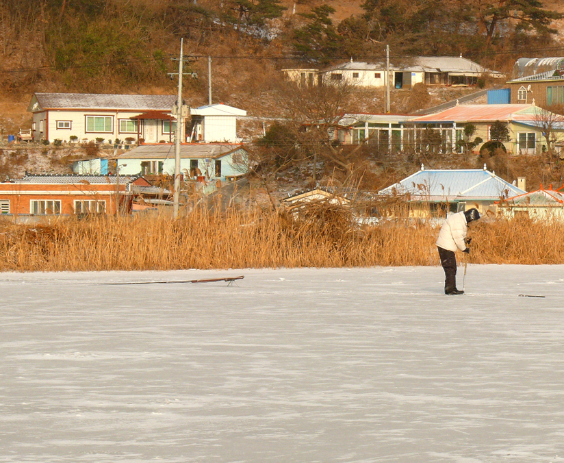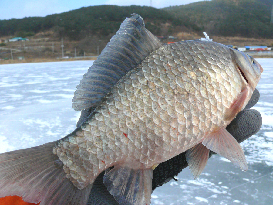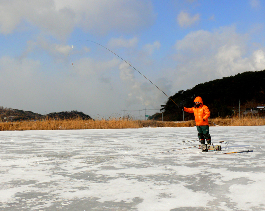 얼음낚시에 이런 포즈 잡기 힘듭니다. |