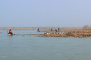 상류권 부들밭은 항상 조사들이 먼저 자리를 잡는 곳입니다 |