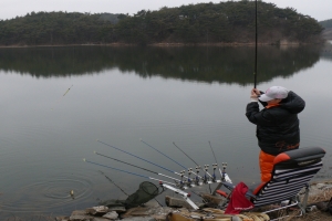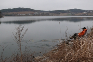 | 아침낚시에 찌를 응시하는 맨꽝님입니다. |