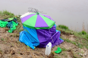 낚싯대, 파라솔, 텐트.. 성한 곳이 별로 없습니다. |