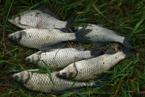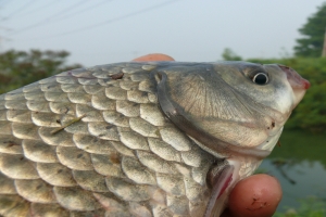 | 아침에 필자의 자리에도 붕어가 입질을 하는데 씨알이 요만합니다. |