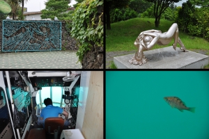 홍대 출신 작가들의 작품이라는 제주 러브랜드 입구 첫 조형물입니다 | 뭐라고 하는데 제목이 &%$@*&^$@ ㅎㅎㅎ 오후에 잠수함 투어를 합니다 (잠수함 조타실 전경) | 뭔 고기라고 하는데...?? |