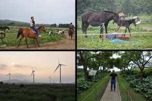 제주도 여자는 많이 않아도 말은 많아요.. 승마 한번 하고 오세요 | 필자가 당일 태어난 망아지를 보았네요 (좋은 일이 있다네요) 바람이 많아서인지 풍력 발전기가 많아요 | 제주 허부동산인지 하는곳 구경합니다 |