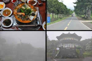 제주는 해산물 요리가 많아요 (그러나 금액 대비해서 맛은...) 맛집 기준임 | 신비의 도로인데 내리막처럼 보이죠 (착시현상) 한라산에 상징인 백록입니다 (4일 동안 한라산을 한번도 못봤습니다) | 한라산 1,100m에 위치한 휴게소입니다 |