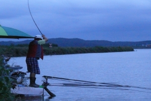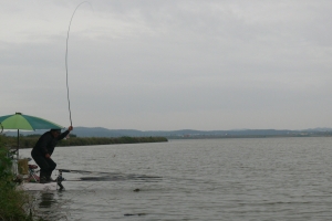 | 캐미를 밝히자 말자 천수만 잉어를 걸고서 한창 실갱이를 펼쳐보입니다. |