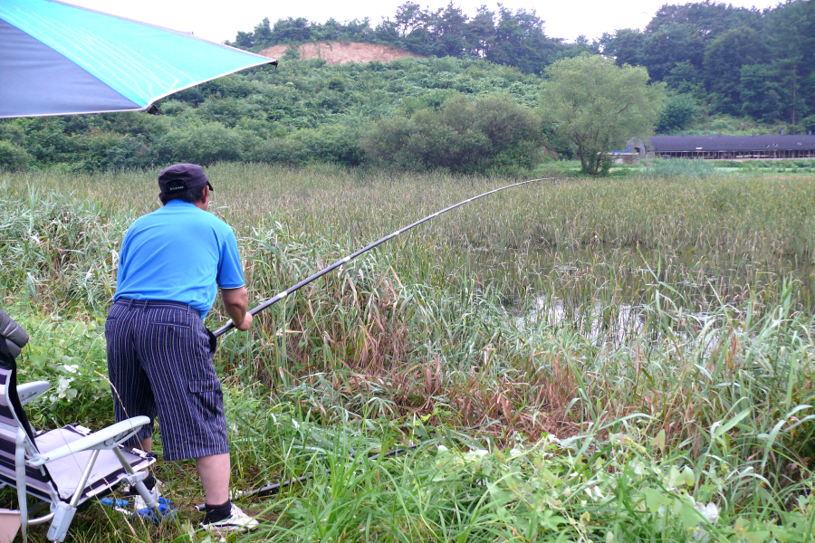 | 수초사이에 멋지게 채비를 넣었습니다. |