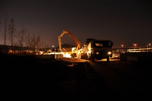 | 한밤중에 콘크리트 타설를 하네요. |